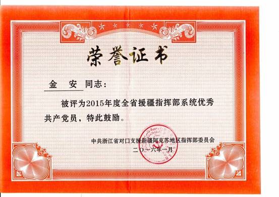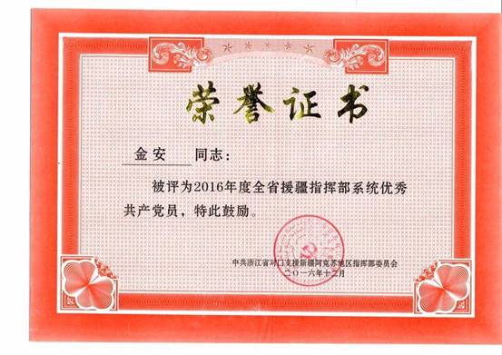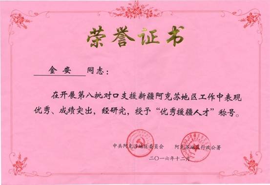 援疆期间,金安老师荣获“优秀援疆人才”、“优秀援疆共产党员”(2015-2016)光荣称号,他的优秀事迹将激励更多的的宁大教师踏上援疆之路,为新疆的高等教学发展做出应有的贡献,也在51吃瓜网 工商团队兴起了一股学习援疆模范的浪潮。