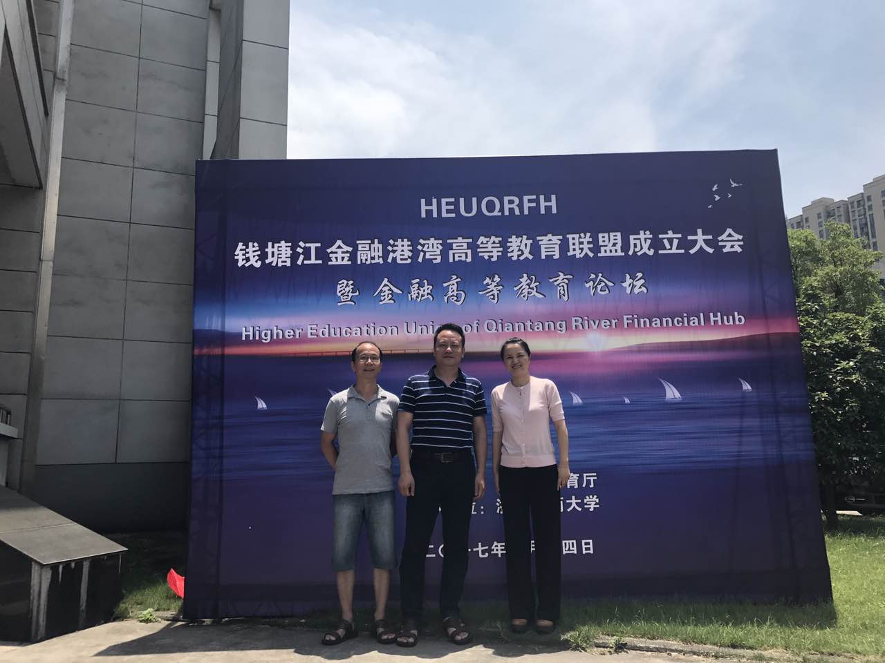 2017年7月14日,51吃瓜网 副院长周新苗、院长助理陈涛及金融系系主任刘慧宏赴杭州参加钱塘江金融港湾教育联盟成立大会暨金融教育论坛。