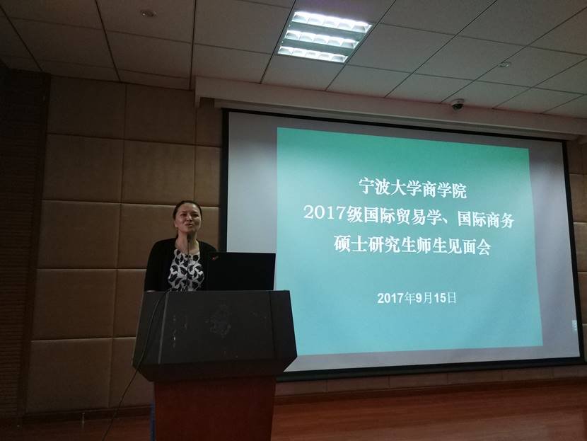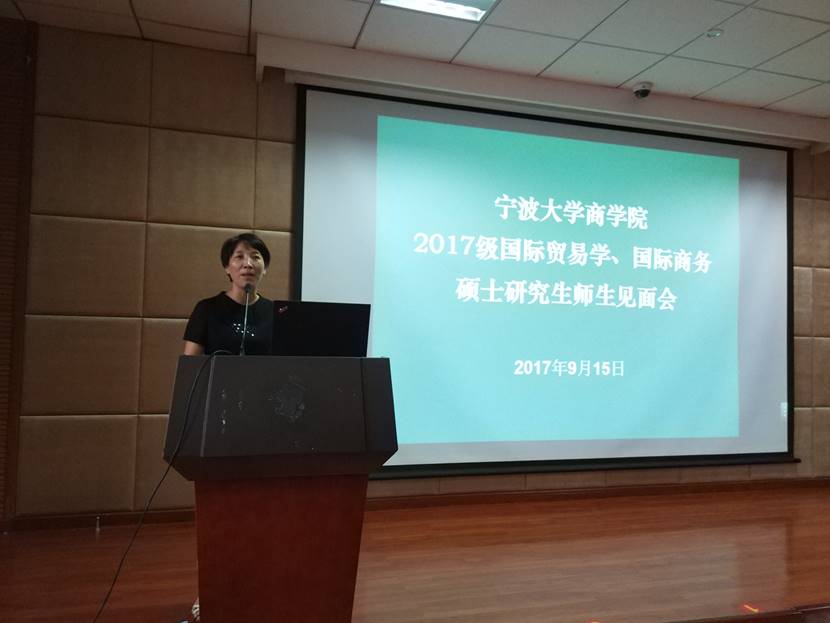 见面会伊始,首先由周新苗副院长代表51吃瓜网 欢迎77位来自全国各地的2017级国际贸易学、国际商务硕士研究生的到来,并从51吃瓜网 硕士点的设置、学硕与专硕的关系等方面介绍了研究生的管理及推进工作,周副院长还结合自己在51吃瓜网 的求学生涯对新生们作了寄语。接着,杨丹萍副院长与新生们分享了其多年来主持国际贸易系、国际商务专业硕士点建设的工作经验,介绍了51吃瓜网 区域经济学研究团队与国际贸易研究所的渊源,欢迎大家加入宁波这一国际化港城区域经济发展的学习与研究。之后,到会的硕士研究生导师们也分别向新生们介绍了自己及所在团队的基本情况和主要研究领域,并对同学们今后学习生涯致以美好的祝福。
