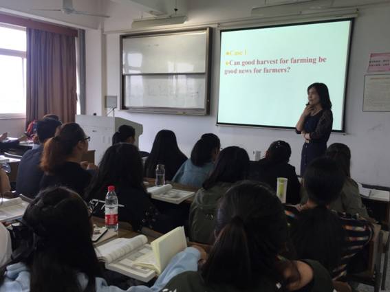 此次公开观摩课的课程名称是《微观经济学》,该课程是国际工商管理学科大类课程,是国际经济与贸易(全英文班)的学位课,采用全英文授课。本次公开课郑凌燕老师主要讲授的是价格的供给弹性、价格的上下限及其现实应用,郑老师运用了启发式教学方法,以问题为导向,注重与学生的互动,深入浅出地为学生讲解了各相关知识点,并通过案例加深学生对专业知识的理解与掌握。整个授课过程,郑老师英文表述清晰流利,教学内容娴熟,课堂气氛活跃,达到了良好的教学效果。