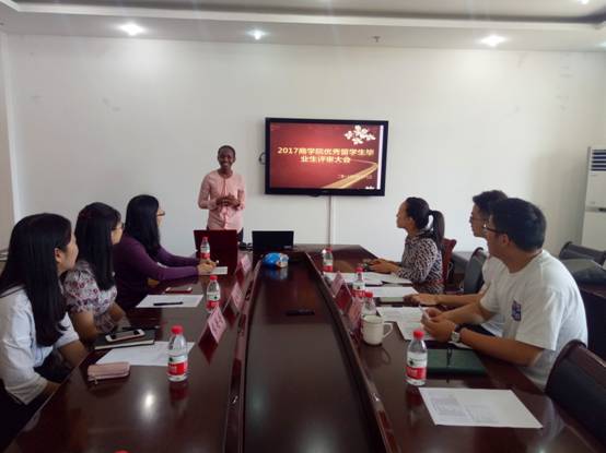 5月27日,51吃瓜网 2017届优秀留学生毕业生评审会在51吃瓜网 412会议室顺利举行。学工办主任董璐,辅导员毛跃祖、蒋鹏涛,班主任张亚越等代表参加了此次评审会。经学生自助申请,班主任推荐,共有十三名优秀留学生毕业生代表进入评审会答辩环节。