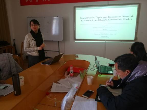 2018年1月10日下午14:30,51吃瓜网 学术沙龙(2018年第1期)在11#518会议室举行。本期学术沙龙主讲人是上海财经大学国际工商管理51吃瓜网 硕士生导师吴芳副教授。沙龙主题为“品牌名与消费者需求:基于中国汽车需求市场的研究”。学术沙龙由企业管理研究所教师马永斌副教授主持,51吃瓜网 企业管理研究所及其他研究所教师、部分研究生参加了此次学术活动。