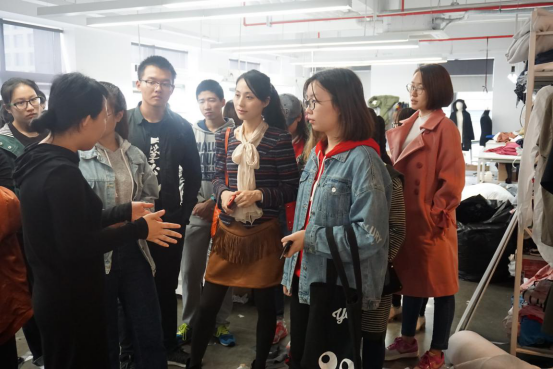 首先,负责人带领同学们参观了“唐狮”、“果壳”等几个企业代表性品牌的服装设计、生产、实体销售部门,给同学们讲解线上线下的销售模式和公司的文化理念,公司鼓励有创新精神的设计师内部创业,创立新的服装品牌,由自己的团队独立运营,为企业寻找新产业的突破点。