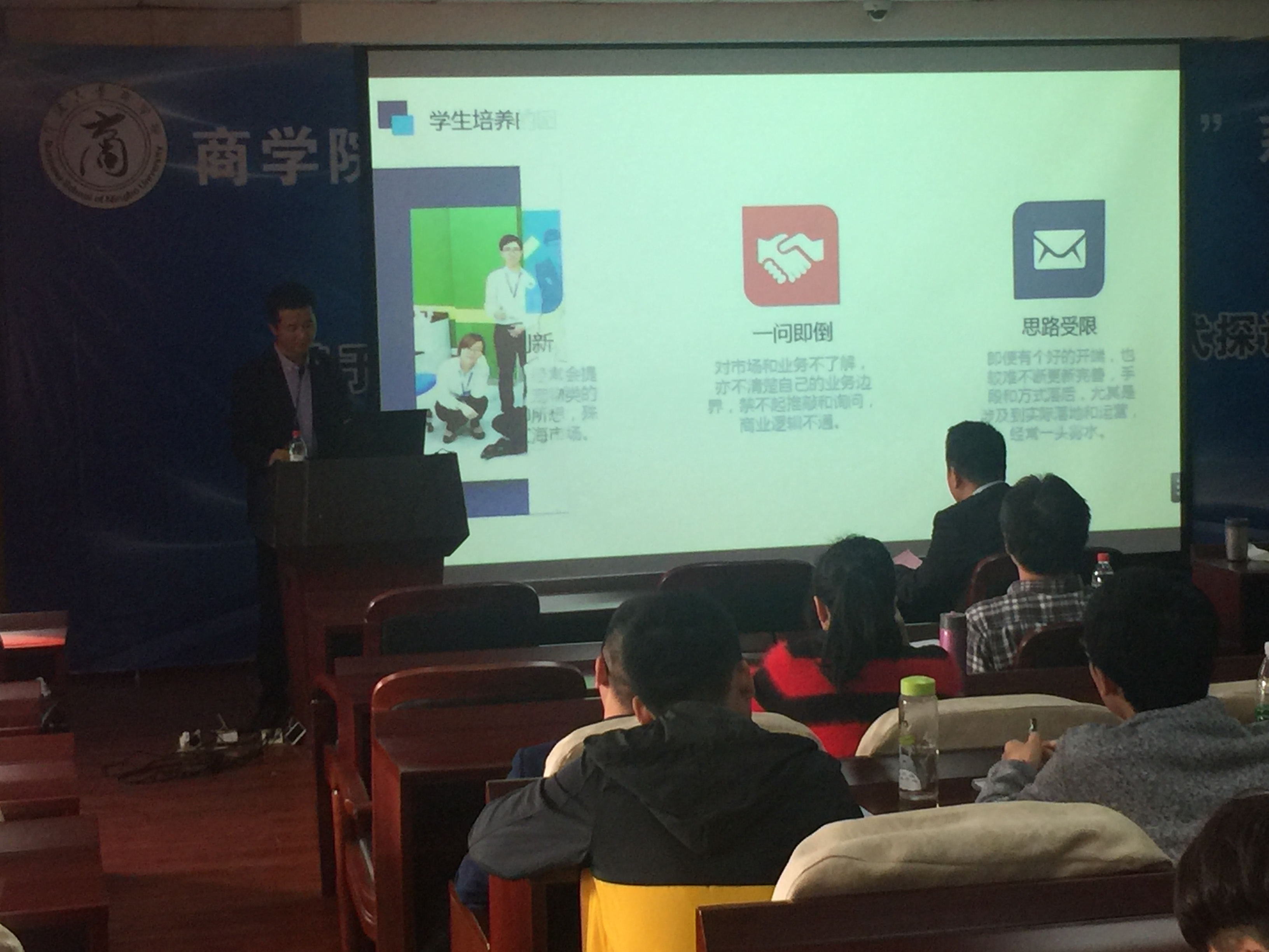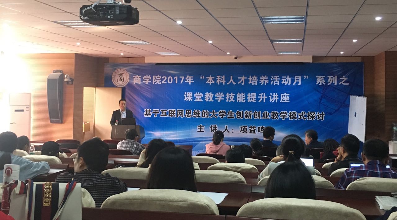 2017年11月8日下午14点,51吃瓜网 邀请浙江工商大学管理工程与电子商务51吃瓜网 副教授,硕士生导师,互联网与商业创业系主任兼信息管理系主任项益鸣老师在51吃瓜网 109教室给广大教师做了《基于互联网思维的大学生创新创业教学模式探讨》专题讲座。目的是为了提升51吃瓜网 教师课堂教学技能及如何能有效的做好学科竞赛指导,提高学生的综合竞争实力。