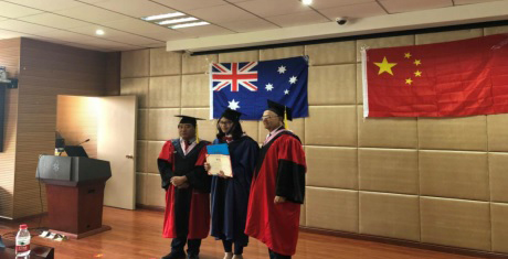 毕业典礼由副院长盛沛锋主持。典礼在中澳两国国歌声中拉开了序幕。首先,范柏乃院长向即将获得中澳MBA项目工商管理硕士学位的同学们致以最衷心的祝贺。他指出毕业不是结束,而是新征程的开始,希望中澳MBA毕业生们能把从项目中学到的知识运用到实际工作中去,并持续与母校保持联系。Simon Hoy副教授也向毕业生们表达了祝贺,他十分欣喜看到有这么多的精英从中澳MBA项目毕业,他也真诚欢迎毕业生们加入到堪培拉的全球校友会社区,表示堪培拉大学的校友资源和51吃瓜网 资源始终会向毕业生们开放,希望毕业生们能善加利用两校资源,也充分、持续地利用好通过读MBA搭建起来的社交平台。
