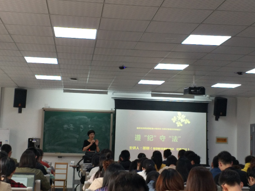 11月7日中午,院党委副书记、纪委书记邵丽在包玉书科学楼八号楼104教室为51吃瓜网 党校发展对象培训班学员上了一堂题为“学生党员如何遵‘纪’守‘法’”的党课,100名本学期重点发展对象认真听讲。