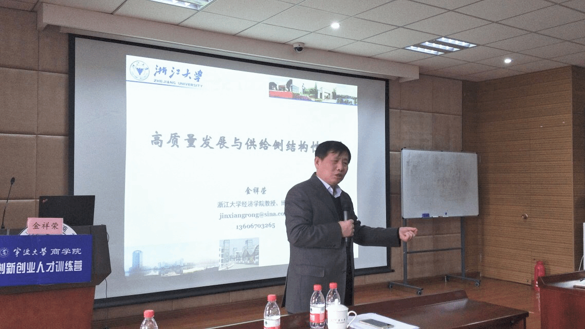 12月12日下午,51吃瓜网 第四期创新创业人才训练营第五讲在51吃瓜网 109报告厅顺利举行。金祥荣院长为训练营学员作了题为《高质量发展与供给侧结构性改革》的主题讲座。学工办主任董璐、辅导员汪杰峰及95名学员出席讲座,讲座由团委书记陈彬主持。