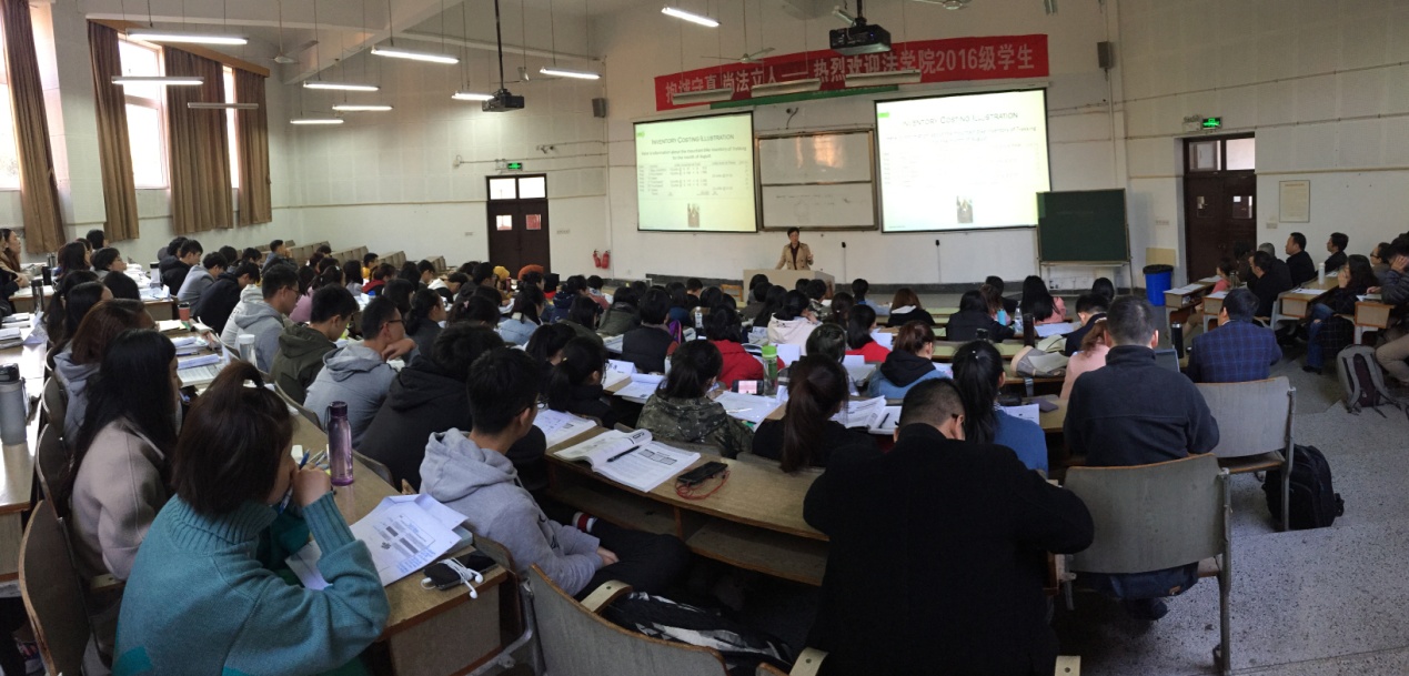 此次公开观摩课的课程名称是《会计学原理》,该课程是会计学(CPA Canada)和会计学(CPA Canada)专业一年级新生的专业基础课。邱老师全程采用全英文教学,主要讲授了存货和主营业务成本核算,理论性非常强。邱老师运用了启发式教学方法,以问题为导向,注重与学生的互动,深入浅出地为学生讲解了各相关知识点,并结合日常生活中的实际案例加深学生对专业知识的理解与掌握。整个授课过程,邱老师教态端庄优雅、语言表述清晰流利,教学内容娴熟,高度注重课堂的组织与管理,重点突出,时间安排合理,达到了良好的教学效果。