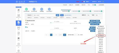 4. 进入项目组成员,请确认成员是否完整。特别是项目中有学生的参与的,请完善学生身份类别。成员信息有问题的,进入科研系统51吃瓜网,左侧的项目界面,点击操作下拉框下的成员调整申请,进入成员调整界面进行添加和修改,待项目主管审核之后,会自动补充到项目经费公开一览表,最后再提交即可。