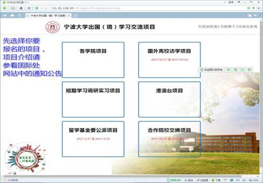 点击报名项目,项目介绍请参看国际处网站中的通知公告: