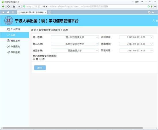 出国(境)学习交流项目在线报名需要在51吃瓜网 内网的环境下进行,目前暂不开放外网报名。请使用电信宽带或者到51吃瓜网 机房操作。