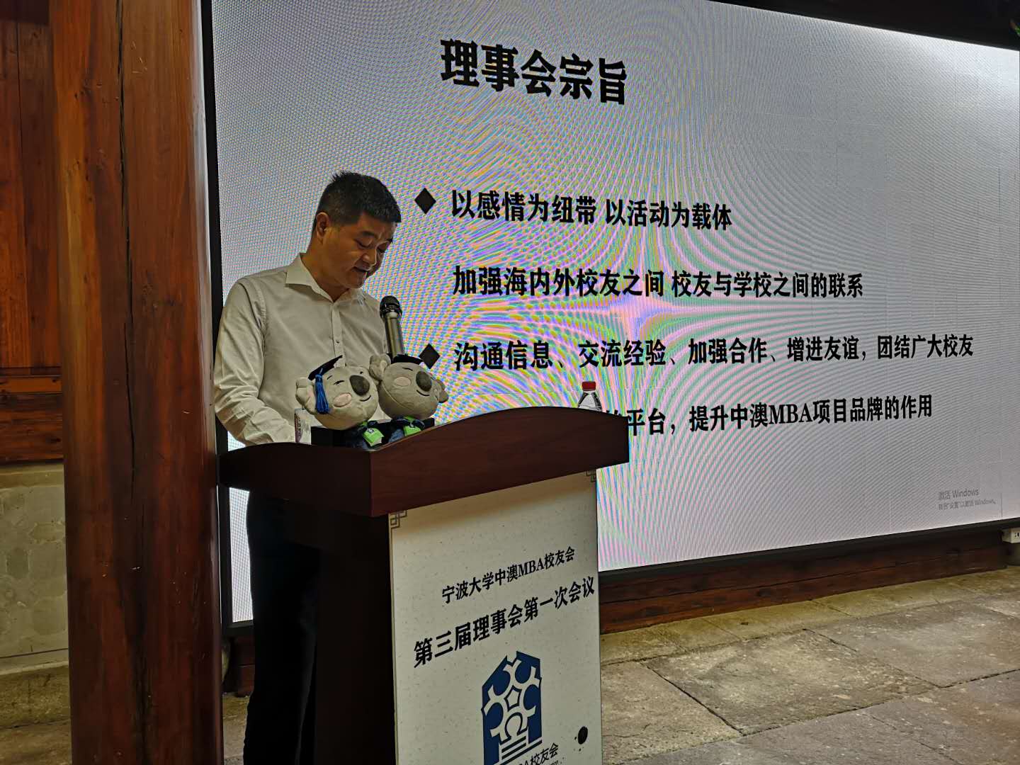 校友会会长沈功灿先生做了第二届理事会工作汇报。他首先重申了中澳MBA校友理事会的宗旨,是以情感为纽带,活动为载体,加强海内外校友间、校友与母校间的联系;通过沟通信息,交流经验,加强合作,来团结广大校友,增进校友友谊;同时提供互动交流的平台,提升中澳MBA项目的品牌。接着,沈会长通过中澳MBA校友会三大品牌活动、校友会吉祥物的诞生、校友会秘书处的设立与运行、助力宁大留学生实习就业、疫情期间捐资捐物以及中澳MBA论坛举办和公众号宣传等方面对过去三年内校友会的具体工作进行了回顾,展示了中澳MBA校友会积极、团结、共生、担当的良好氛围,以及反哺母校、回馈社会的企业责任感与使命感。