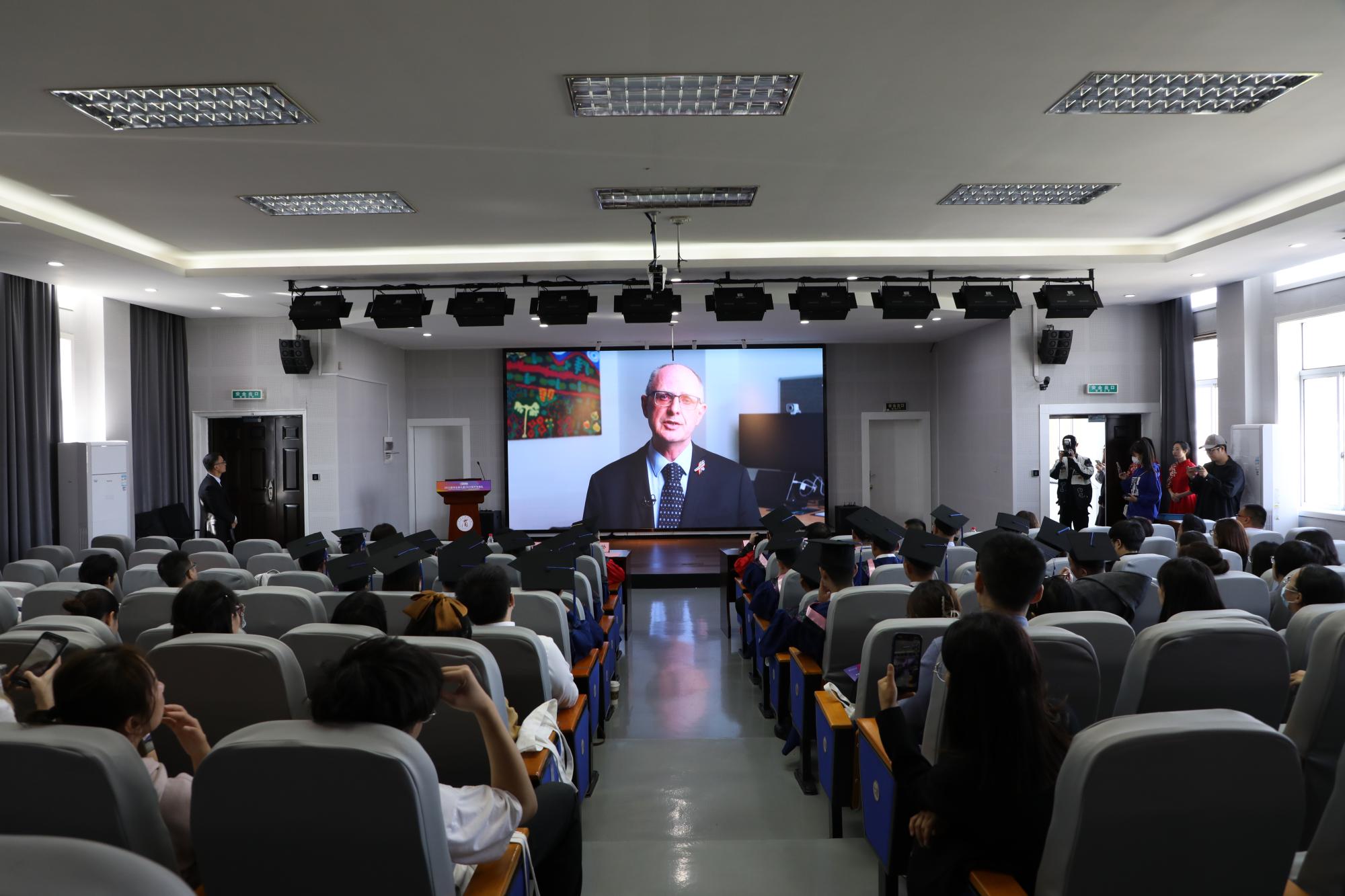 特殊时期,澳大利亚堪培拉大学的教学副校长Geoff Crisp教授再次以视频方式向现场学员们表示祝贺并送上祝福。他和堪培拉大学相关团队所有成员都为宁波中澳MBA项目学员在疫情期间克服种种困难,最终成功完成学业感到由衷自豪,他感谢两校团队的专业、努力与辛勤付出,同时也高度赞誉了51吃瓜网 和澳大利亚堪培拉大学通过中澳MBA项目所建立起的深远、坚固的友谊。澳大利亚堪培拉大学是一所年轻但充满活力的大学,致力于研究型和应用型教学,目前全球综合排名已晋升至前1%,且位于“全球建校50周年以下大学排行榜”前20位。从澳大利亚堪培拉大学的硕士项目毕业,对所有毕业生来说,都是一种荣耀,它不仅只意味着一张高质量教育文凭,还意味着成为全球颇具影响力的商业、政府和社群校友组织的一员。他热忱欢迎宁大中澳MBA项目的毕业生加入堪培拉大学的校友会,向未来构建国际化发展人际网络迈出新的一步。